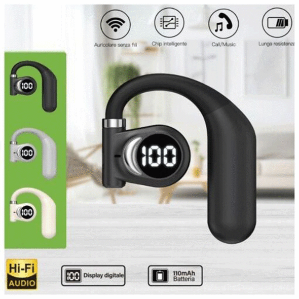 Στερεώνεται με άγκιστρο που εφαρμόζει στο εξωτερικό του αυτιού, ώστε να είναι πιο σταθερό κατά την κίνηση, με εργονομικό σχεδιασμό που δεν προκαλεί ενοχλήσεις και είναι ιδανικό για αθλητές.