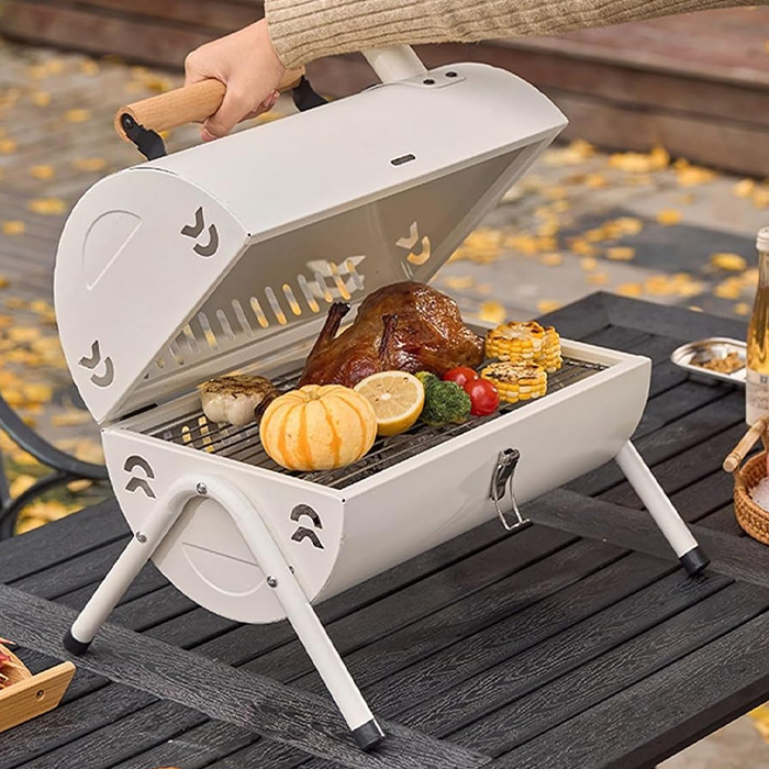 Μοντέρνα Φορητή Ψησταριά με Κάρβουνα και Καπάκι Λευκή 38x25cm