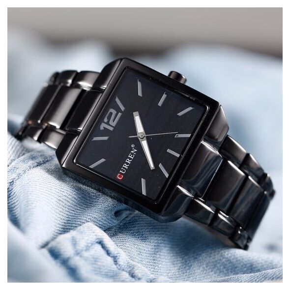 Μοντέρνο Ρολόι Χεριού Curren Black - Square Unisex Steel Band Quartz Watch