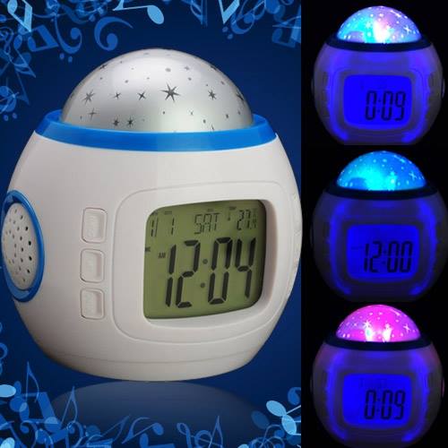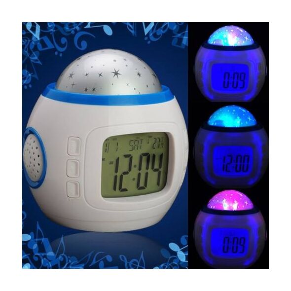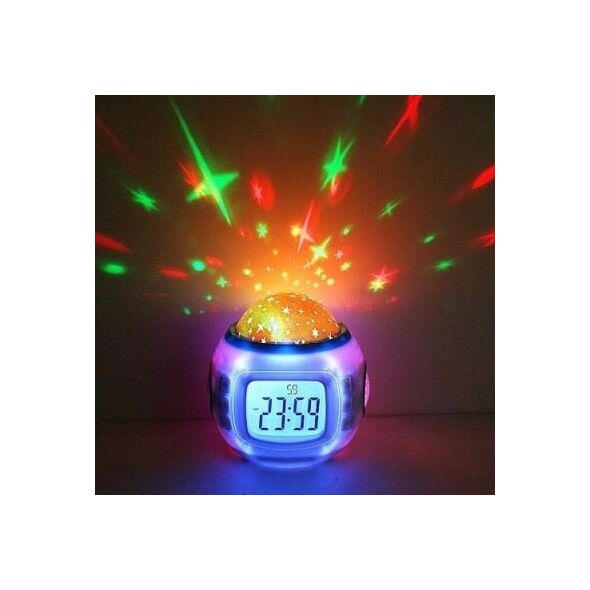 Μουσικό Ρολόι-ξυπνητήρι με 1 projector για προβολή αστεριών σε διάφορους χρωματισμούς στο ταβάνι!