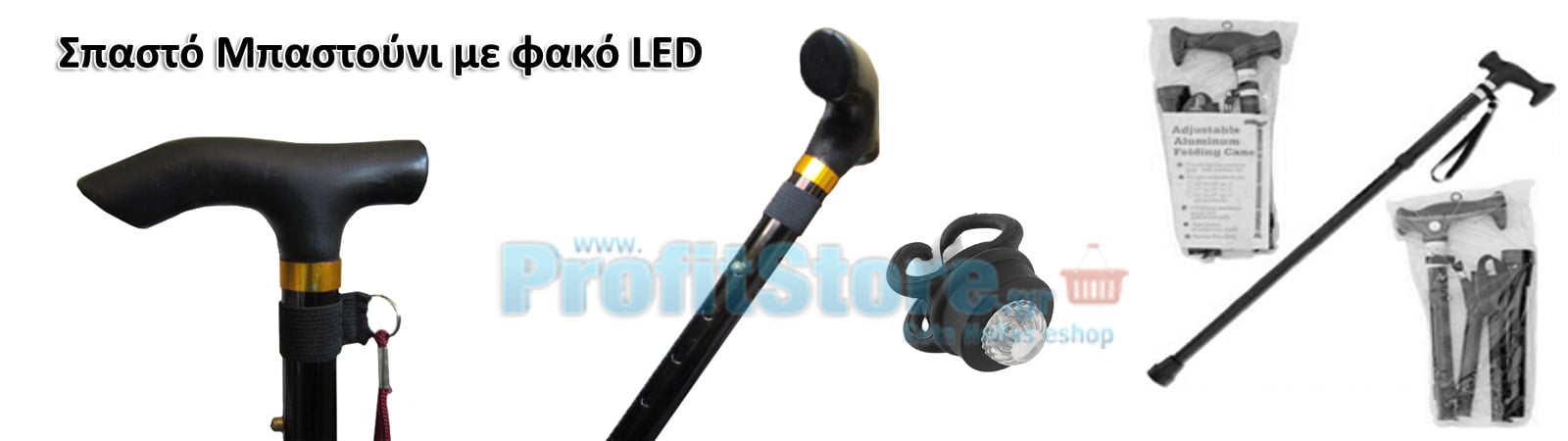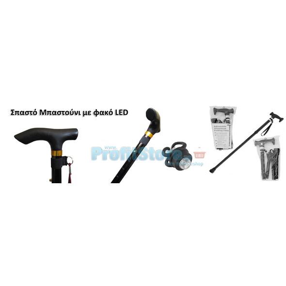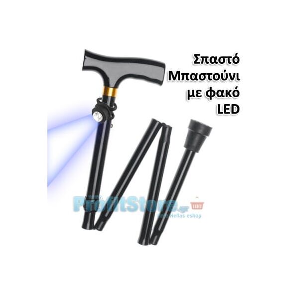 Μπαστούνι Σπαστό LED 100Kg, Πτυσσόμενο και Ρυθμιζόμενο με φακό LED