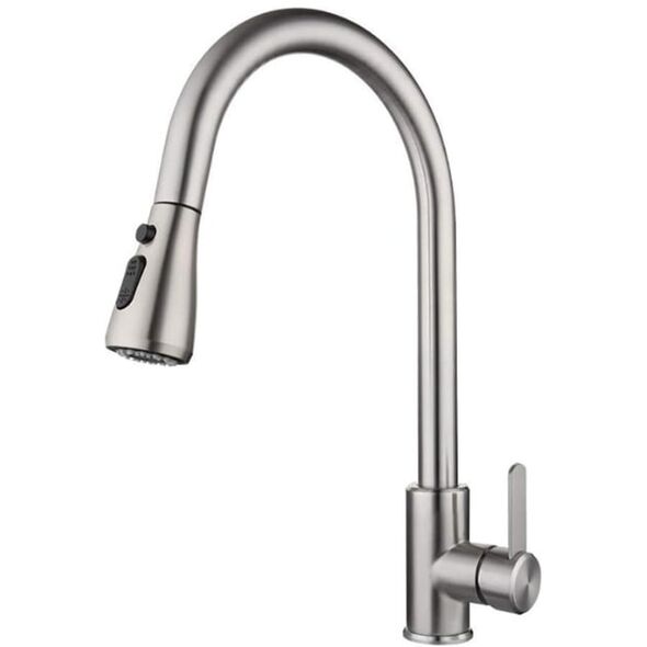 Μπαταρία Πάγκου Κουζίνας από Ανοξείδωτο Ατσάλι με Λειτουργία Ροής, Αποσπώμενη Κεφαλή Ντουζ και Παύση - Varte
