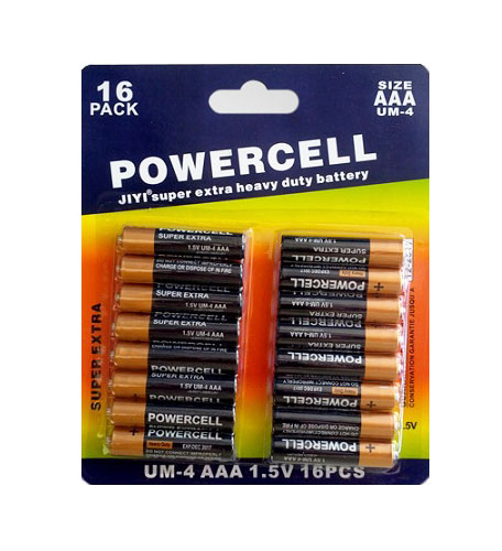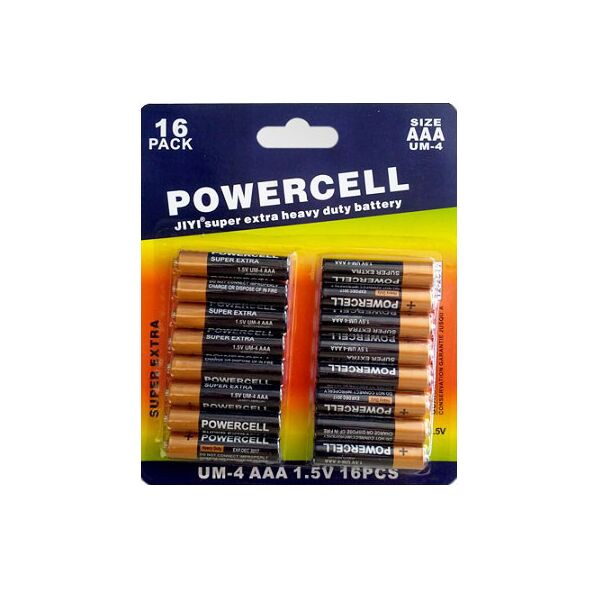 Super Extra Heavy Duty AAA Μπαταρίες, 1.5V, Powercell, σε συσκευασία 16 τεμαχίων.