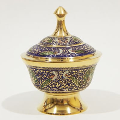 Μπρούτζινο Λιβανιστήρι Μπλε με Χρυσό 13cm