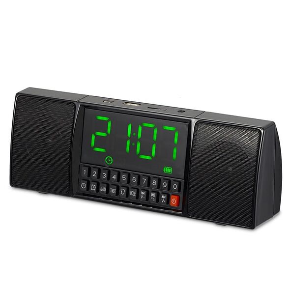 Επαναφορτιζόμενο Multimedia Ασύρματο Ηχείο Bluetooth με Ρολόι Ξυπνητήρι, Μικρόφωνο, USB/SD Player FM Radio & Hands-Free