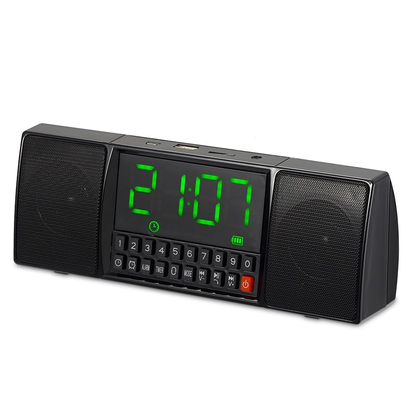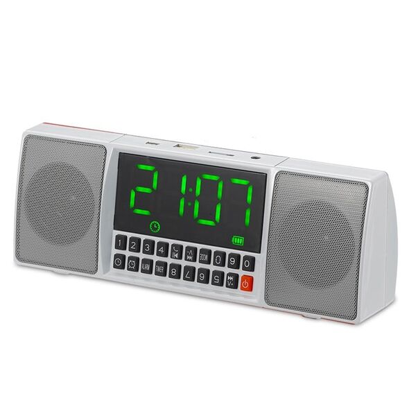 Επαναφορτιζόμενο Multimedia Ασύρματο Ηχείο Bluetooth με Ρολόι Ξυπνητήρι, Μικρόφωνο, USB/SD Player FM Radio & Hands-Free