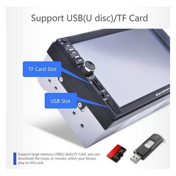 Μια πρακτική λύση για το αυτοκίνητο σας! Παίζει από οποιαδήποτε πηγή και αναπαραγάγει σχεδόν τα πάντα! Δείτε βίντεο, ταινίες, σειρές ή αναπαράγετε την αγαπημένη σας μουσική που έχετε αποθηκευμένη σε USB ή Micro SD κάρτες.