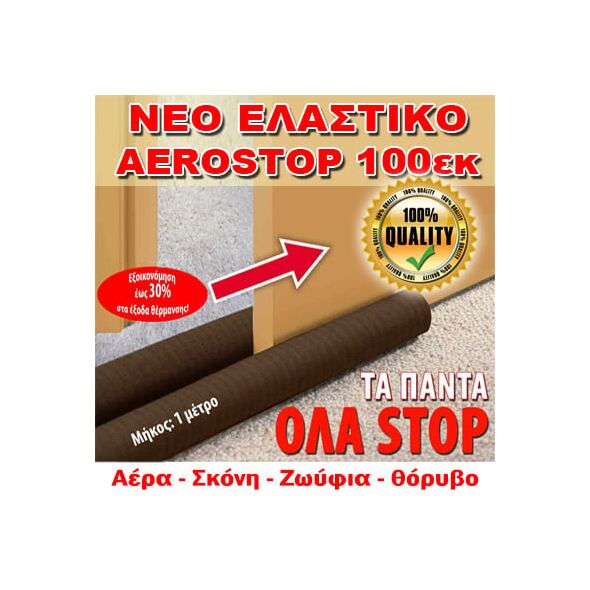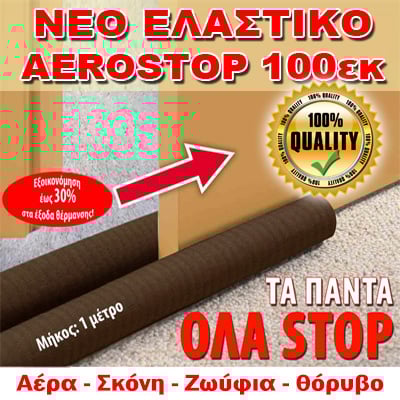 Πείτε "ΣΤΟΠ" στο κρύο τον χειμώνα και τη ζέστη το καλοκαίρι με το ΝΕΟ έξυπνο "AEROSTOP 100"! Είναι το μοναδικό στην Ελλάδα που προσαρμόζει σε θωρακισμένη πόρτα πάχους έως 8 εκ. Με ελαστικότητα που εφαρμόζει τέλεια σε όλες τις πόρτες. Προστατεύει το χώρο σας από τον αέρα, τη σκόνη, τα ζωύφια και τον ενοχλητικό θόρυβο!