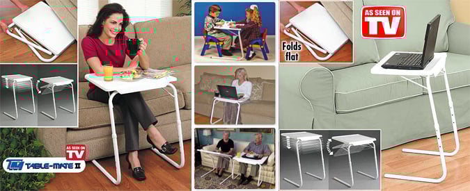 Το πτυσσόμενο τραπεζάκι Table Mate προσαρμόζεται σε 6 διαφορετικά ύψη και σε 3 κλίσεις που σημαίνει ότι έχει 18 διαφορετικές θέσεις τοποθέτησης!