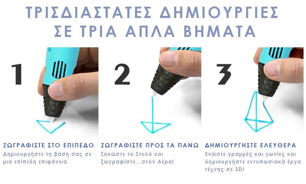 Απελευθερώνει τη φαντασία και την ευρηματικότητα μικρών και μεγάλων, αφού επιτρέπει σε εσάς ή το παιδί σας να να ζωγραφίσετε σε 3 διαστάσεις.