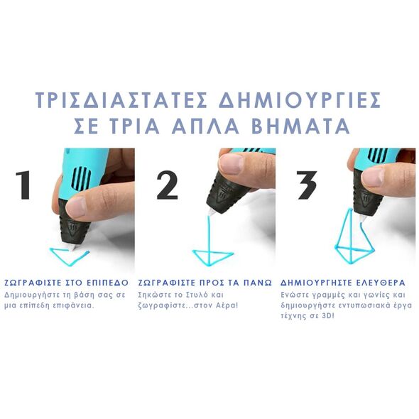 Απελευθερώνει τη φαντασία και την ευρηματικότητα μικρών και μεγάλων, αφού επιτρέπει σε εσάς ή το παιδί σας να να ζωγραφίσετε σε 3 διαστάσεις.
