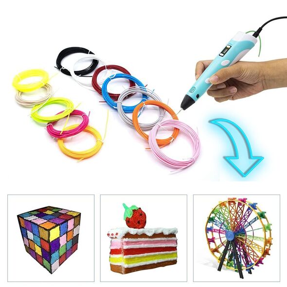 Νέο Ισχυρό 3D Pen Στυλό με 10 τμχ Νήματα PLA Filament 5μ Τρισδιάστατης Ζωγραφικής Γλυπτικής - 3D Printer Pen - Κατάλληλο και για Παιδιά
