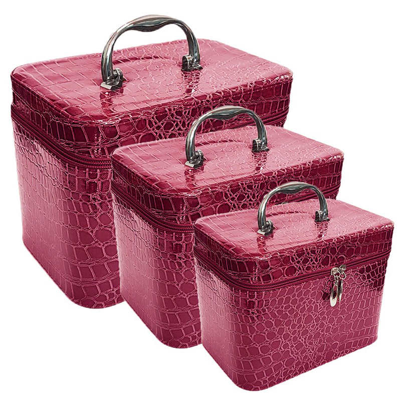 Νεσεσέρ - Κουτί - Βαλιτσάκι Ταξιδιού για Καλλυντικά Σετ 3 σε 1 Ροζ - Travel Makeup Leather Box 3 in 1