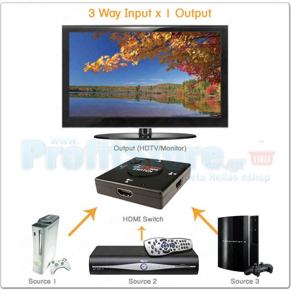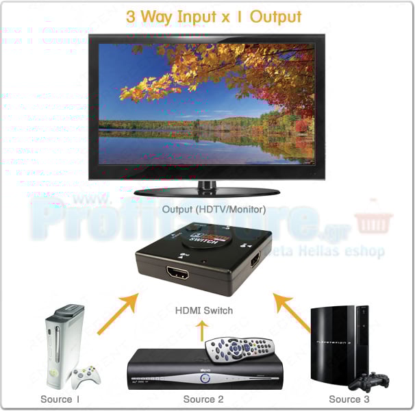 The switch routes high definition video, up to 1080p, as well as digital audio from your HDMI source to HDMI display. This device would be perfect for connecting your HD-Sky box, games console or any HDMI device to your HDTV.