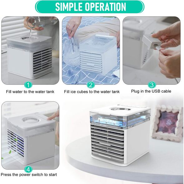 NexFan® Φορητό USB Κλιματιστικό με LED Φωτισμό 4 σε 1 Air Cooler - Ανεμιστήρας - Air Condition & Υγραντήρας με Τεχνολογία Εξάτμισης