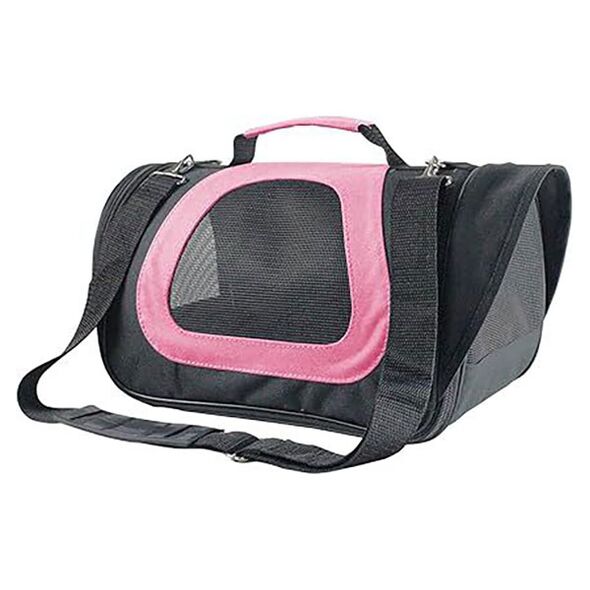 Αναζητάτε μια άνετη και πρακτική λύση για τις μετακινήσεις του κατοικιδίου σας; Η τσάντα μεταφοράς για κατοικίδια σε κομψό μαύρο και ροζ χρώμα είναι η ιδανική επιλογή για εσάς! Με εργονομικό σχεδιασμό, υψηλής ποιότητας υλικά και άνετο χώρο, εξασφαλίζει την ασφάλεια και την ευκολία τόσο για εσάς όσο και για τον μικρό σας φίλο.
