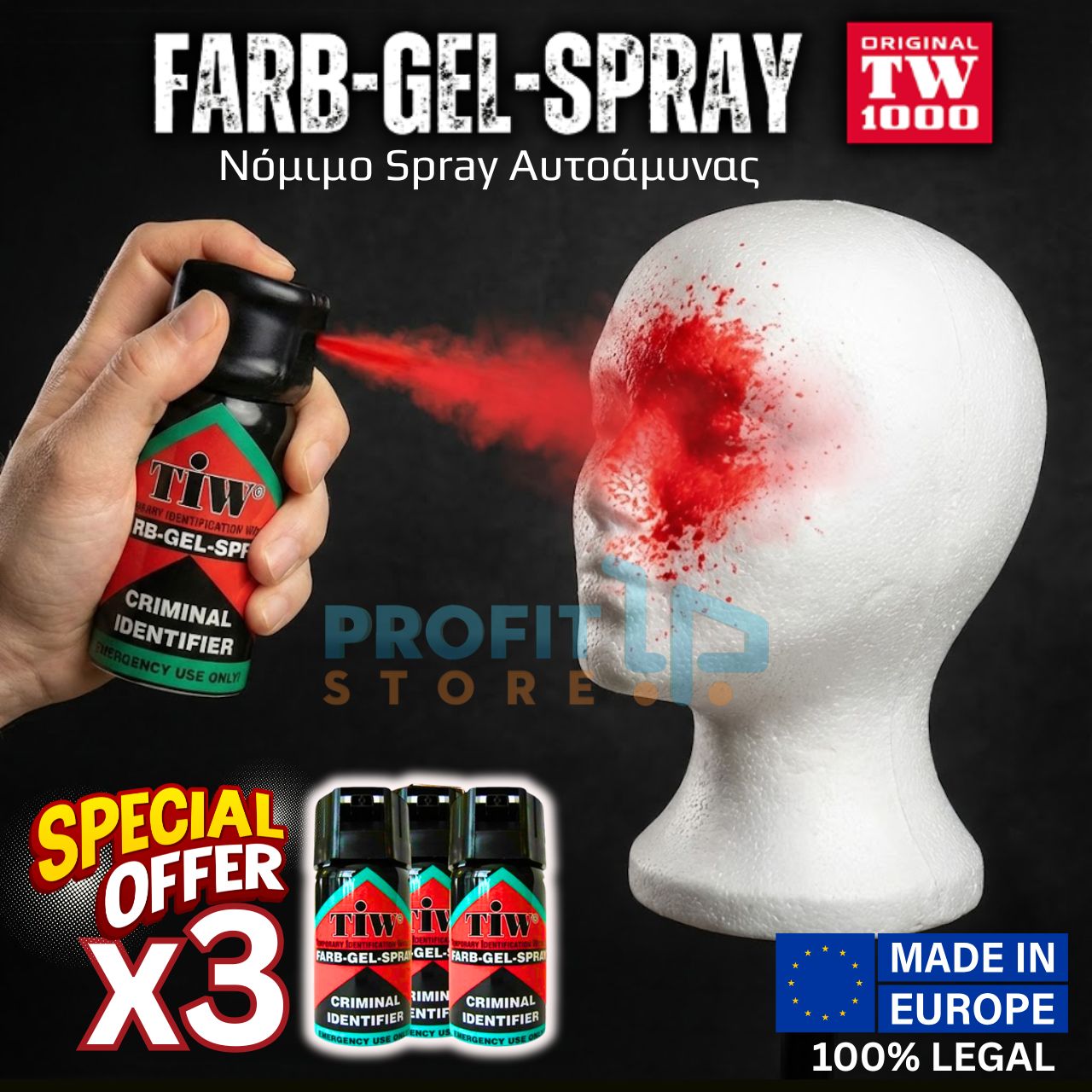 Απολύτως νόμιμο σπρέυ αυτοάμυνας. Δεν περιέχει χημικά, δακρυγόνα ή άλλες τοξικές ουσίες. Εκτοξεύει με μεγάλη δύναμη και σε απόσταση 4 μέτρων κόκκινο τζελ το οποίο τυφλώνει και ακινητοποιεί στιγμιαία τον επιτιθέμενο δίνοντας σας πολύτιμο χρόνο να ξεφύγετε και να καλέσετε σε βοήθεια.