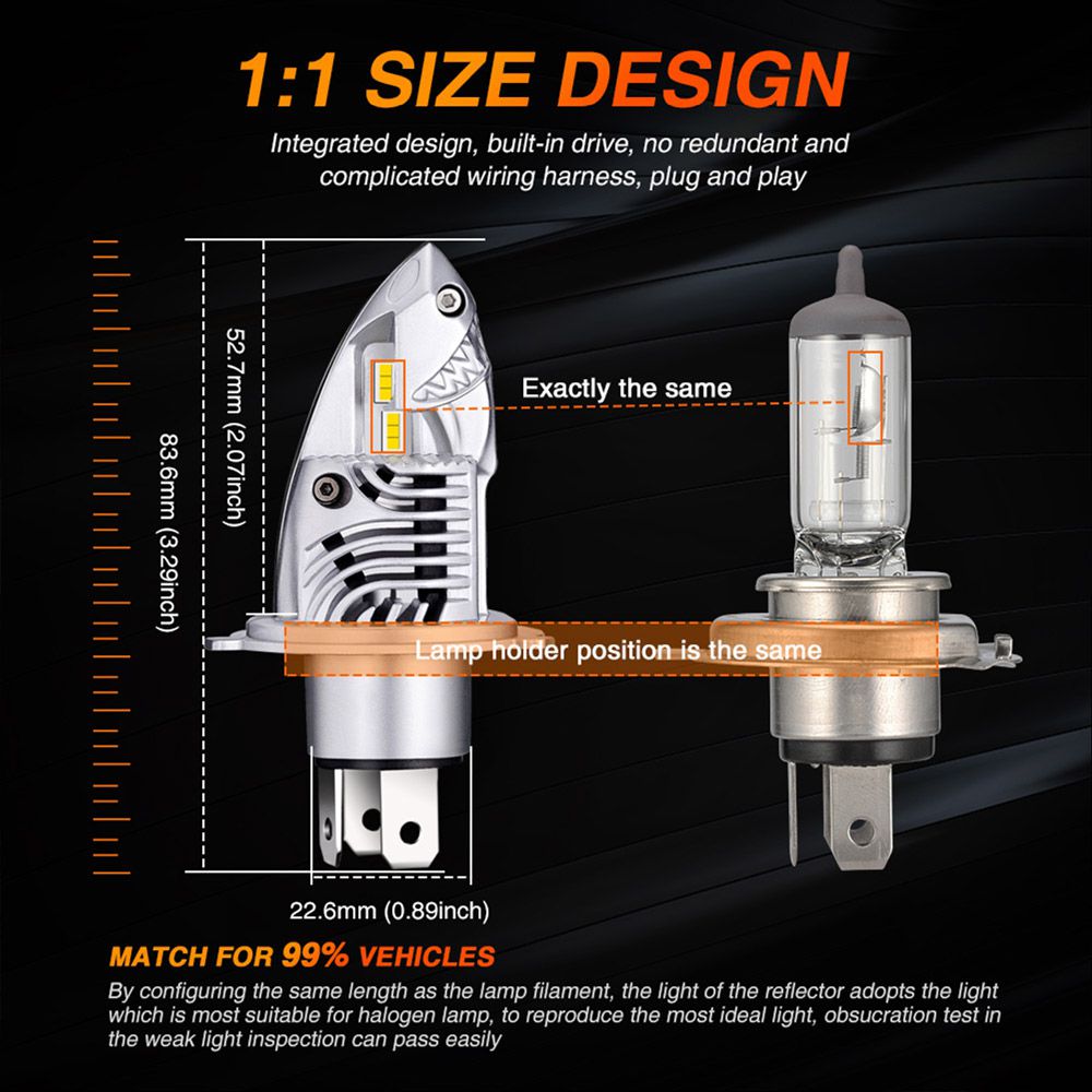 Ζεύγος λάμπες LED τύπου H4 αυτοκινήτου F10 της εταιρείας NovSight®. Χωρίς περιττά μέρη, ballast και καλώδια, απλά συνδέστε στην επαφή H4 και είστε έτοιμοι.