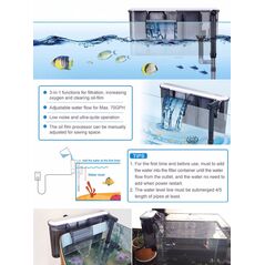 Εσωτερικό φίλτρο για μεγάλα ενυδρεία. Διαθέτει 3 επίπεδα τα οποία έχουν από ένα σφουγγάρι φιλτραρίσματος. Το φίλτρο αυτό εγγυάται ολοκληρωμένη διήθηση, οξυγόνωση, καθαρισμό και αερισμό του νερού, διατηρώντας την υγιεινή στο ενυδρείο σας.