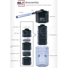 Εσωτερικό φίλτρο 800L/Hour,για να έχετε κρυστάλλινο νερό που είναι απολύτως ασφαλές για τα ψάρια σας. Η συσκευή δεν απαιτεί εργαλεία για την αποσυναρμολόγησή της, διευκολύνοντας τον καθαρισμό. Απορροφά τη βρωμιά και διατηρεί το νερό καθαρό.