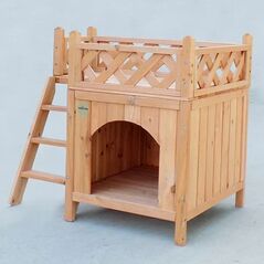 Ξύλινο σπιτάκι για γάτες και μικρούς σκύλους με σκάλα και μπαλκόνι. Κατασκευασμένο από ποιοτικό έλατο, ανθεκτικό σε εξωτερικές συνθήκες, με δύο επίπεδα για ξεκούραση και παιχνίδι. Ιδανικό για εσωτερική ή εξωτερική χρήση.