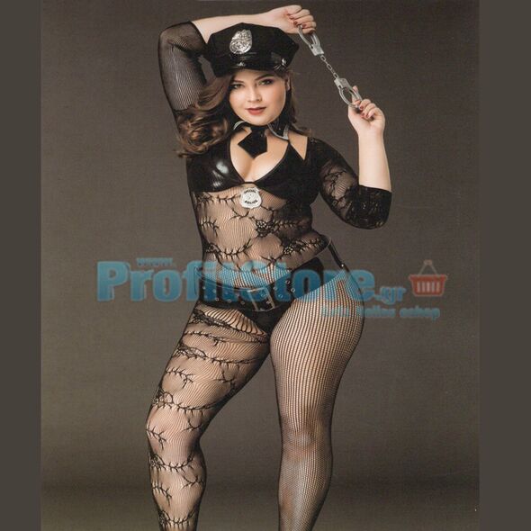 Ολόσωμο Μακρυμάνικο Καλσόν Sexy Αστυνομικίνα με Ζώνη, Καπέλο, Μπουστάκι, Γραβάτα με Γιακά και Χειροπέδες - Sexy Lingerie