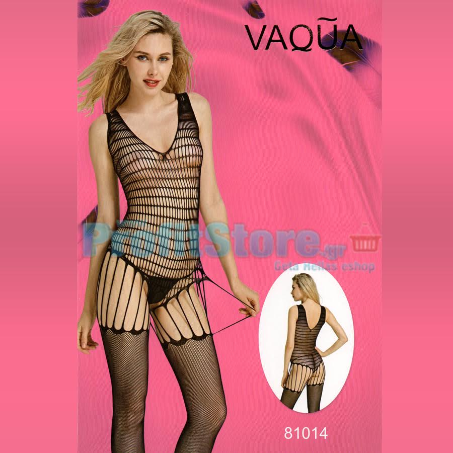Ολόσωμο Sexy Καλσόν Δίχτυ με Ενσωματωμένες Ζαρτιέρες και Διάτρητα Σχέδια VAQUA-81014 - Sexy Lingerie Bodystockings. Ελαστικό ONE SIZE. Σε μαύρο χρώμα.