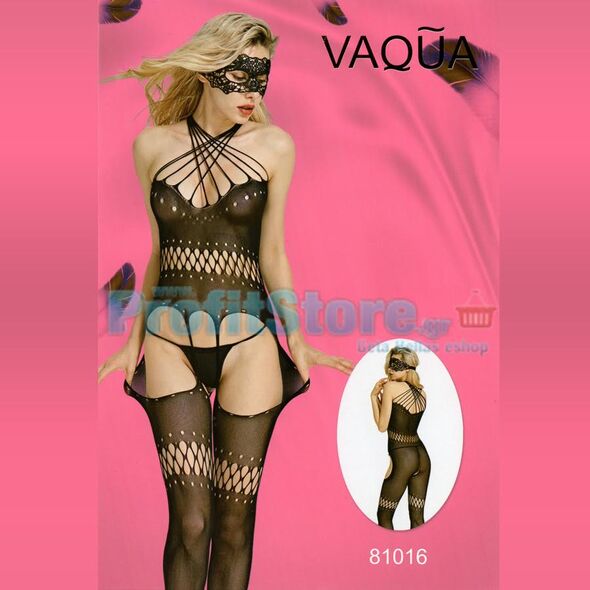 Ολόσωμο Sexy Καλσόν με Διάτρητα Σχέδια με Χιαστή στο Μπούστο VAQUA-81016