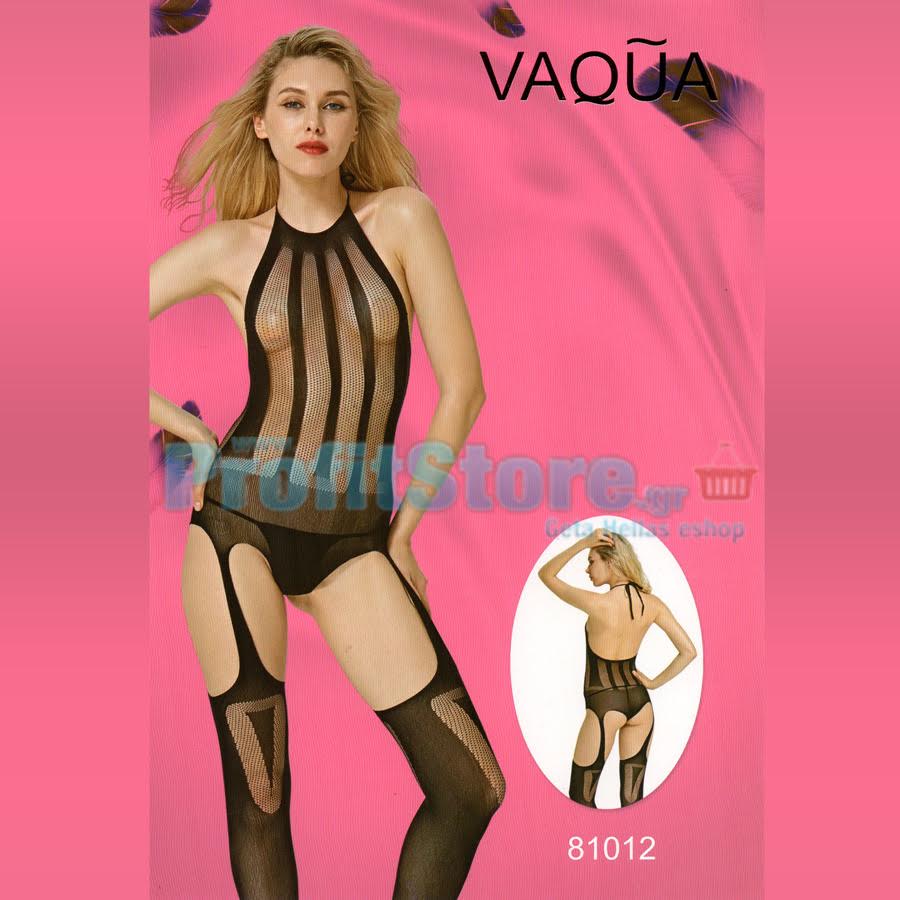 Ολόσωμο Sexy Καλσόν με Ενσωματωμένες Ζαρτιέρες και Γεωμετρικά Σχέδια VAQUA-81012 - Sexy Lingerie Bodystockings. Ελαστικό ONE SIZE. Σε μαύρο χρώμα.