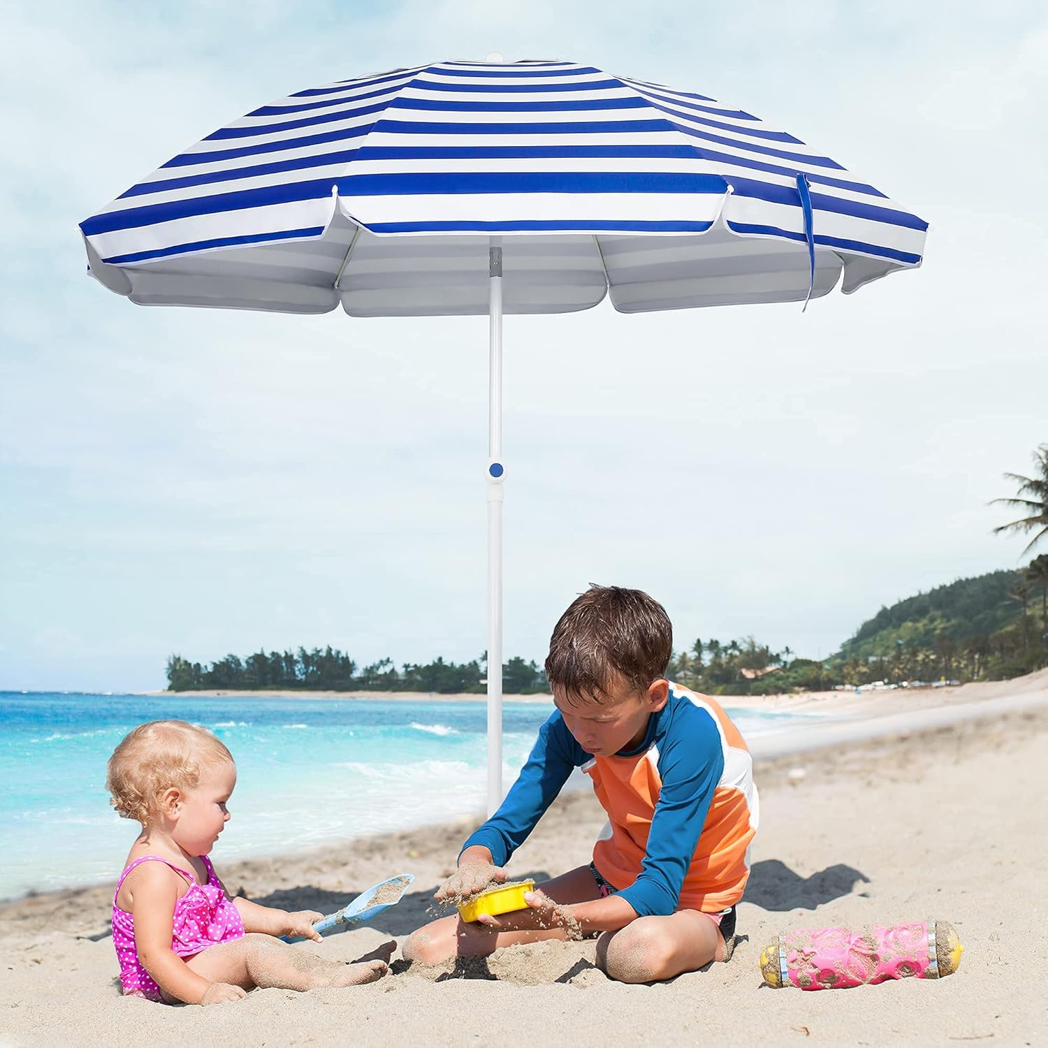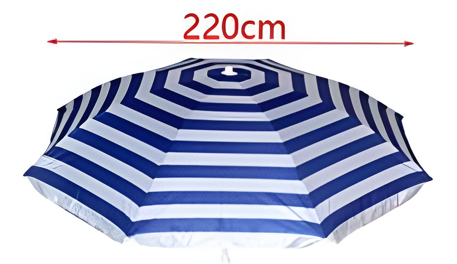 Απολαύστε τη σκιά σας στην παραλία με μια ευρύχωρη ομπρέλα 220cm, σχεδιασμένη για άνεση και πρακτικότητα.