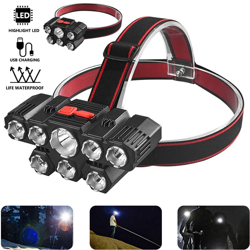 Οχταπλός Αδιάβροχος με 8 LED Φακός Κεφαλής Υψηλής Φωτεινότητας USB Επαναφορτιζόμενος - Headlamp Super Bright