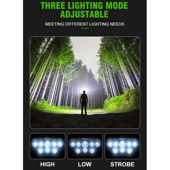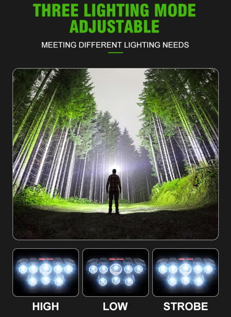 Ισχυρός επαναφορτιζόμενος φακός LED υψηλής φωτεινότητας. Διαθέτει 8 LED, 3 λειτουργίες φωτισμού και προσαρμοζόμενο ελαστικό ιμάντα κεφαλής, πράγματα που το καθιστούν ιδανικό για όλες τις καταστάσεις!
