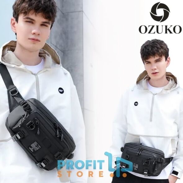 Ozuko Ανδρικό Τσαντάκι Μέσης - Crossbody Αδιάβροχο - 3.8L - Μαύρο