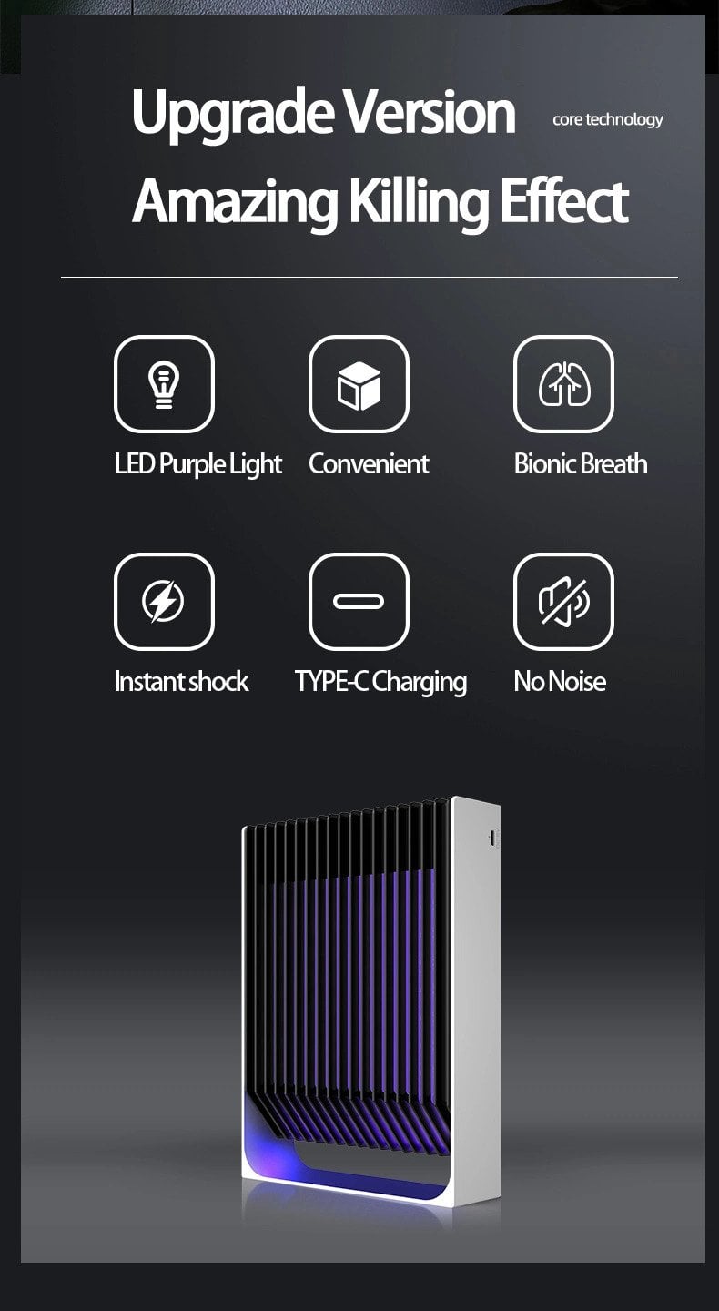 Διαθέτει 5 LED λάμπες υπεριώδους μωβ φωτισμού που ελκύει τα κουνούπια και τα εντομα σε αυτό. Όταν αυτά πλησιάσουν και μπουν στο εσωτερικό πλέγμα (στο εξωτερικό υπάρχει πλέγμα ασφαλείας), θα χτυπηθούν από ρεύμα το οποίο και θα τα εξοντώσει ακαριαία.