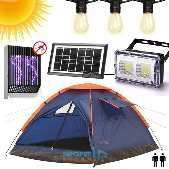 2 ατόμων - Pack & GO CAMPING Set Πλήρες με Σκηνή Escape® UV-BLOCK - Ηλιακό Σύστημα Φωτισμού με Φωτιστικό, Φακό, Γιρλάντα με Λάμπες & Φορτιστή USB - Ηλεκτρικό Εντομοκτόνο Αντικουνουπικό με Μπαταρία