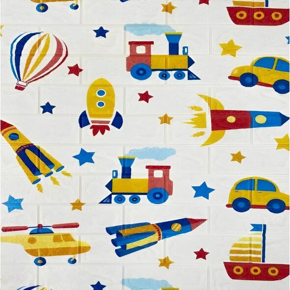Μεταμορφώστε το δωμάτιο του παιδιού σας με την Παιδική Ανάγλυφη Αυτοκόλλητη Ταπετσαρία Τοίχου με Πολύχρωμα Οχήματα.