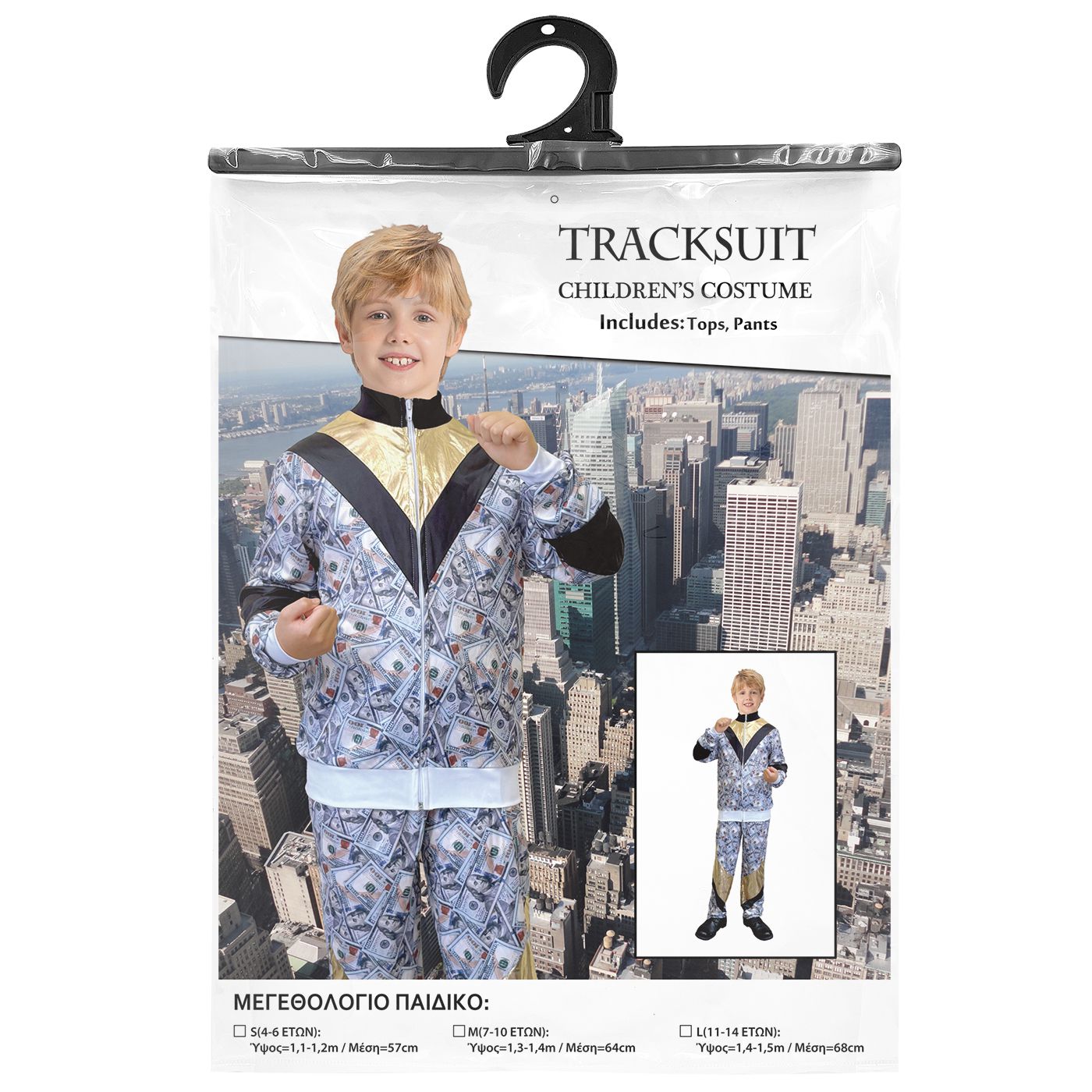 Με μοντέρνο σχέδιο εμπνευσμένο από street fashion και μοτίβο χαρτονομισμάτων, αυτή η στολή συνδυάζει άνεση και εντυπωσιακή εμφάνιση, ιδανική για αποκριάτικες εκδηλώσεις, σχολικά πάρτι ή θεματικές εμφανίσεις.