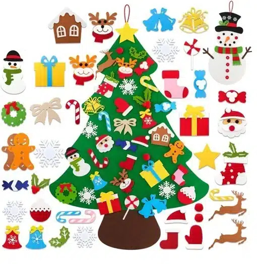 Παιδική Χριστουγεννιάτικη DIY Κατασκευή Τοίχου από Τσόχα - Χριστουγεννιάτικο Δέντρο 91cm με 40 Στολίδια