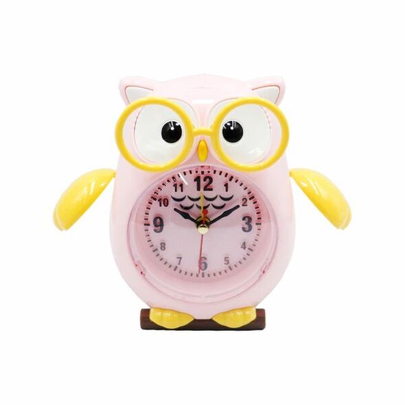 Παιδικό Επιτραπέζιο Ρολόι Μπαταρίας με Ξυπνητήρι σε Σχήμα Κουκουβάγιας Ροζ