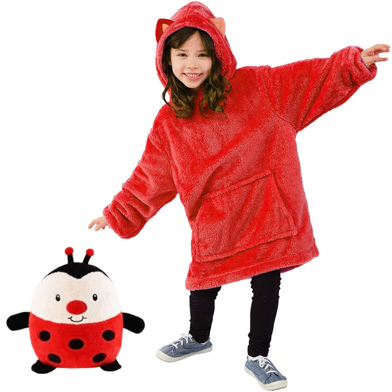 Παιδικό Λούτρινο Αρκουδάκι που γίνεται Φούτερ Fleece - Πασχαλίτσα Κόκκινη One Size - Hoodie