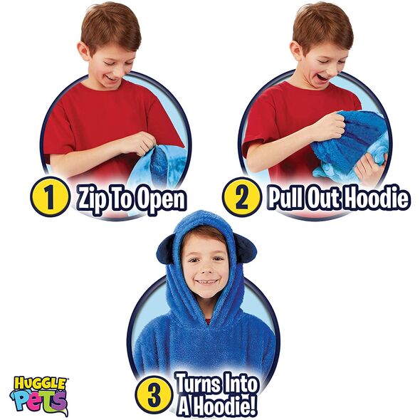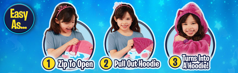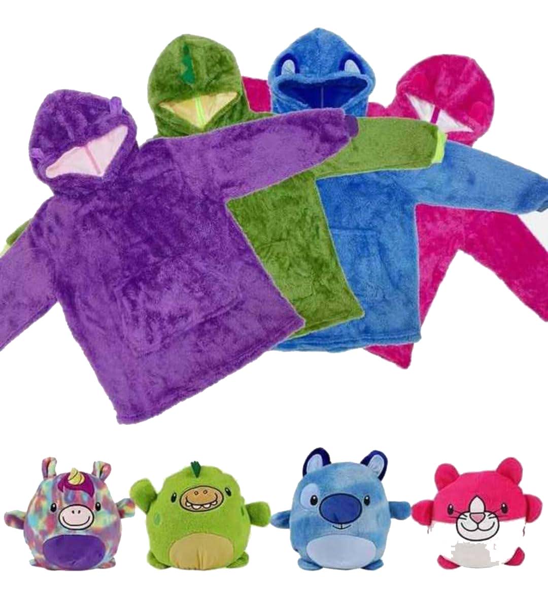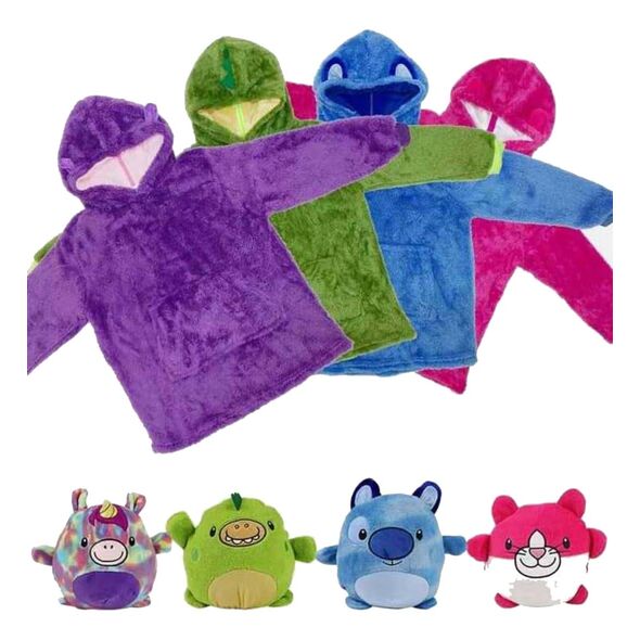Ανοίξτε το φερμουάρ που βρίσκεται στο πίσω μέρος του λούτρινου παιχνιδιού, και ξεδιπλώστε από μέσα το fleece πουλοβεράκι! Είναι one size και ταιριάζει σε όλα τα παιδιά ανεξαρτήτου ηλικίας.