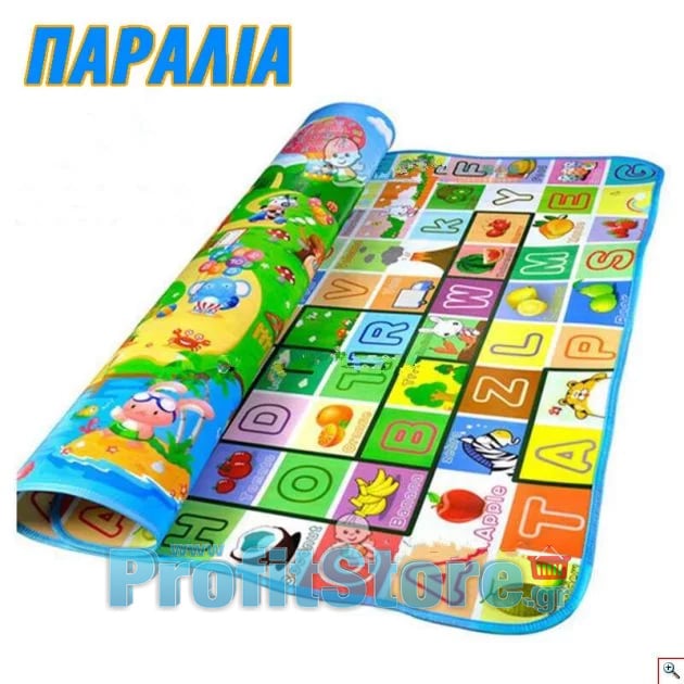 Το Playmat διπλής όψης έχει χαρούμενες παραστάσεις και τα γράμματα της Αγγλικής αλφαβήτου. Διατίθεται και χωρίς την αλφάβητο.
