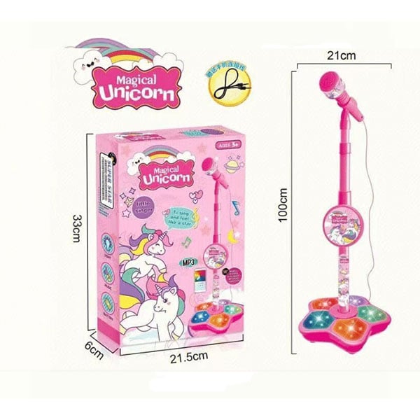 Παιδικό Μικρόφωνο Ροζ Μονόκερος με Φως και Ήχους-Καραόκε