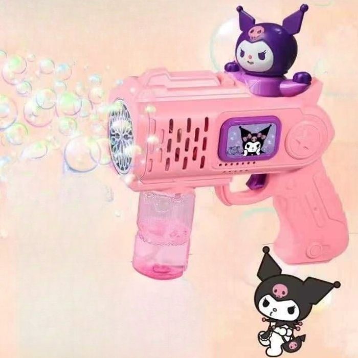 Φέρτε χαμόγελα και χρώμα στο παιχνίδι με το ηλεκτρικό πιστόλι μπουρμπουλήθρας Kuromi, που συνδυάζει την αγαπημένη φιγούρα των παιδιών με εντυπωσιακή παραγωγή φυσαλίδων.