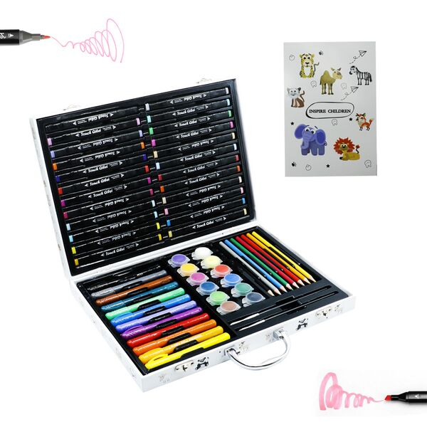 Ένα ολοκληρωμένο σετ που περιλαμβάνει 58 τεμάχια από μαρκαδόρους διπλής μύτης, μολύβια, κηρομπογιές, νερομπογιές, πινέλα και ένα τετράδιο-color book με ζωάκια για να φέρει κοντά το παιδί με το χρώμα και τη φύση!