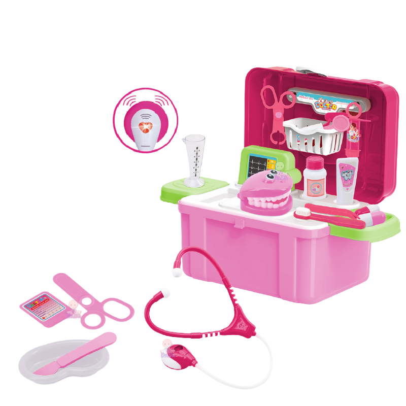 Το παιδικό βαλιτσάκι γιατρού σε ροζ απόχρωση είναι ένα διασκεδαστικό και δημιουργικό σετ παιχνιδιού ρόλων που επιτρέπει στα παιδιά να γίνουν μικροί γιατροί και να εξετάζουν φίλους, γονείς ή αγαπημένα παιχνίδια.