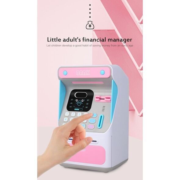 Παιδικός Κουμπαράς με Αναγνώριση Προσώπου - Μίνι ΑΤΜ με Ηλεκτρονικό Κλείδωμα Προσώπου, Αυτόματη Κύλιση Χαρτονομισμάτων & Εισαγωγή Κερμάτων - Ροζ