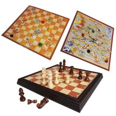 Ένα παιχνίδι για παιδιά 3 ετών και πάνω που θα τα διασκεδάσει και θα εξασκήσει τις στρατηγικές ικανότητές τους! Έχει μέσα ξύλινα πιόνια για σκάκι και για τα άλλα δύο παιχνίδια. Διαστάσεις παιχνιδιού: 28 x 28cm.