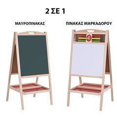 Διπλός αναδιπλούμενος μαγνητικός πίνακας με μαυροπίνακα και πίνακα μαρκαδόρου. Διαθέτει μεγάλο ράφι για να βάζετε και να οργανώνετε τα σύνεργα σας, καθώς και άβακα και ρολόι.