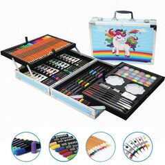 Μεγάλο φορητό παιδικό σετ ζωγραφικής σε ένα υπέροχο ροζ βαλιτσάκι Μονόκερος για κορίτσια με ξυλομπογιές, τέμπερες, μαρκαδόρους, νερομπογιές, κηρομπογιές και πολλά ακόμα για να ξεκινήσει το παιδί σας μια καλλιτεχνική περιπέτεια! Πολύ ελαφρύ για να το κουβαλάνε και τα παιδιά σας παντού μαζί τους!